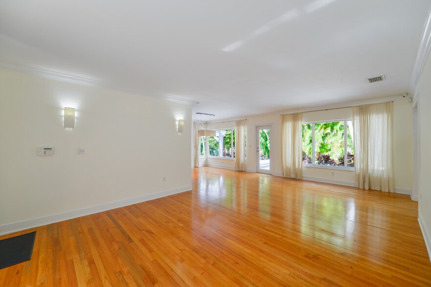 Exquisitely remodeled Coral Gables residence on a rare double lot with a coveted corner location. This 4BR/2.5BA Mediterranean masterpiece features impact windows and doors, hardwood floors, and high ceilings. Spacious living and dining areas seamlessly connect to a European-style kitchen with flat-panel cabinetry, quartz countertops, wine cooler, and premium appliances. The marble spa-inspired primary suite boasts a frameless glass shower, soaking tub, and double vanity. An expansive lanai with wet bar and pass-through opens to a tropical oasis with pergola, deck and lush landscaping. One-car garage, ample parking, Key West–style dipping pool/spa, fully fenced privacy landscaping, oversized courtyard, garage storage loft, and stepping-stone driveway accommodating multiple vehicles. Ideally situated. An exceptional opportunity not to be missed.