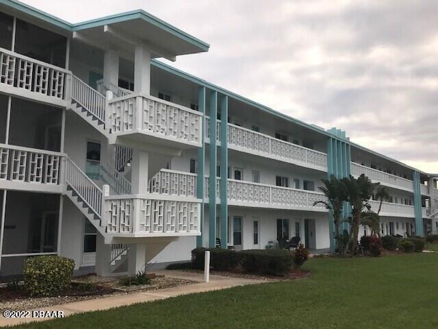 Daytona Riverfront Complex 55 and over, this second floor unit is ready to move in. Gorgeous views of the Halifax River including magnificent sunsets for your daily enjoyment. Features beautiful cheery wood laminate floor in living room, newly remodeled bathroom with walk-in shower, two bedrooms and one bathroom, includes bonus screened in Patio. Coin operated Washer and Dryer on same floor as condo. Requires a complete background and credit check. This unit is owned by a Florida Licensed Real Estate Agent. Ideal for single person. One covered parking space available for residents. No pets. Rent includes water, sewer, trash and cable.