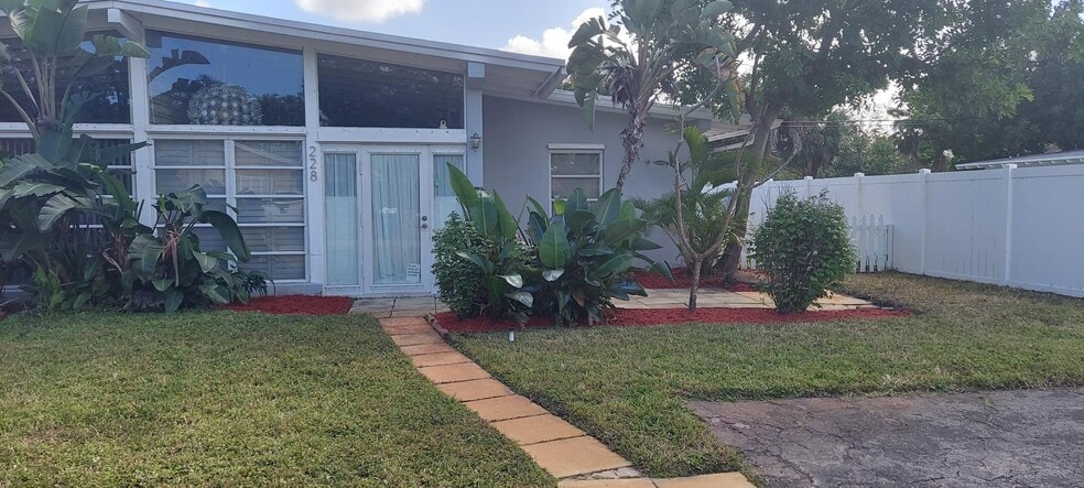 This 2 bedroom/ 1 bath duplex is rarely available. Its located in the Historic Lake Ida Neighborhood. You can walk to Downtown Delray and bike to the beach. This Mid Century Modern property has high ceilings and was designed by Delray Beach's own famous architect-Roy Simon. The kitchen has been upgraded with granite counter tops and modern appliances. The bath is surrounded in marble and comes with a tub and shower. The Florida Room is very large with high ceilings, French doors, and has its own Central AC. The French doors open to a back patio covered with a wooded trellis. You also get a side yard and a small storage room. You get parking for 2 cars up front. The neighborhood is safe and very friendly.