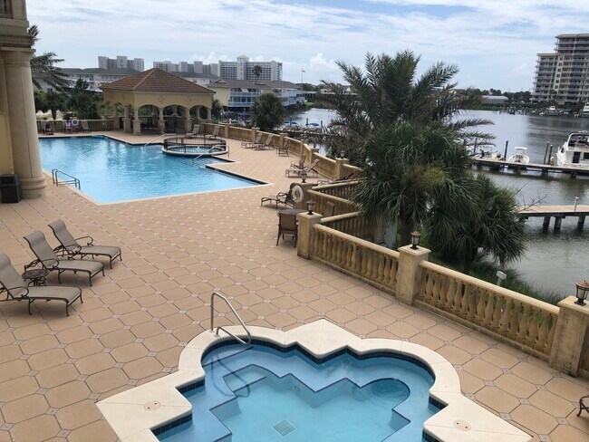 Beautiful views from this Harbor front 4 bdrm, 3 bath condo. 2465 sq ft Spacious kitchen, with large breakfast bar, opens to living area overlooking the harbor with windows galore that open up to 30’ balcony Available Furnished or unfurnished Enjoy your favorite waterfront sports just steps away, with marina and boat club on site. Gorgeous Mediterranean style lobby, leading to beautiful waterfront pool, spa and large area covered for entertaining. Community room available for parties etc. Included with this condo is spacious storage area.