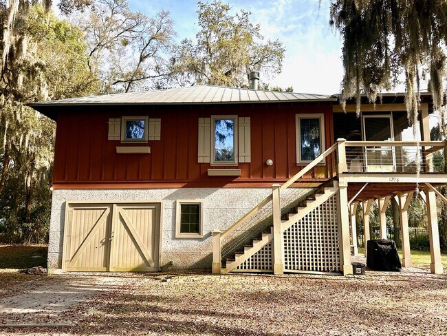 This 1600 sf, 2BR/2BA is located amongst the beautiful live oaks near the intercoastal waterway and just 5 minutes to the beach! The upstairs is the main living area with vaulted ceilings, exposed beams and hardwood floors throughout. It has a nicely updated kitchen with center island. Good sized family room with window seats and a fireplace. The master suite has a fireplace and walk-in shower. It has a huge screened in patio on the top deck. The lower floor can be a guest suite, office or 2nd bedroom. It has its own full bath and mini kitchen. There is also an oversized garage with workspace and plenty of storage. Close by shopping at Harris Teeters and the Shops at Amelia Mart. Small dogs ok with owner permission. To schedule a showing, call Chaplin Williams Rentals, .