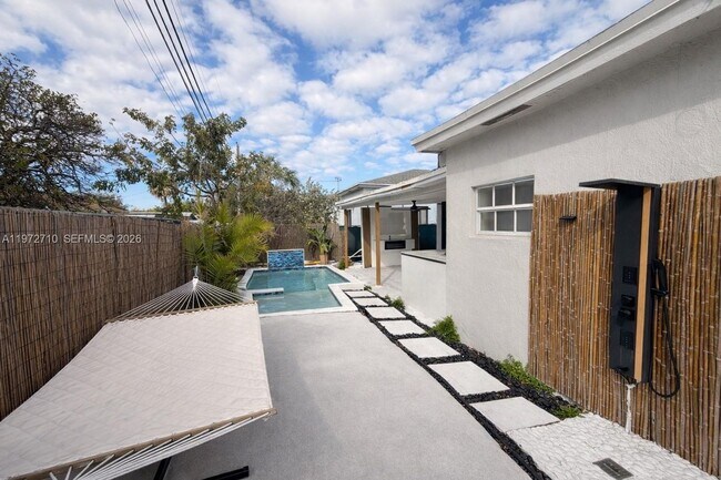COURTESY OF Keller Williams Realty International Lifestyles Exceptional three-bedroom, two bathroom single-family home ideally situated near I-95, offering quick access to downtown Fort Lauderdale, beaches, shopping, dining, and schools. Designed with an open-concept layout, the spacious living area flows effortlessly into the dining space and a thoughtfully appointed kitchen. The kitchen features stainless steel appliances, a breakfast bar, and coordinated countertops and backsplash that create a polished, cohesive look. The primary suite offers a generous closet and a private bathroom complete with a soaking tub and double-sink vanity. Step outside to a true backyard retreat featuring a pool and terrace, perfect for entertaining, weekend gatherings, or quiet mornings enjoying the South Florida sunshine. The home’s prime location also places you near major highways, restaurants, and parks including Reverend Samuel Delevoe Memorial Park. This property delivers comfort, convenience, and a relaxed Florida lifestyle all in one.