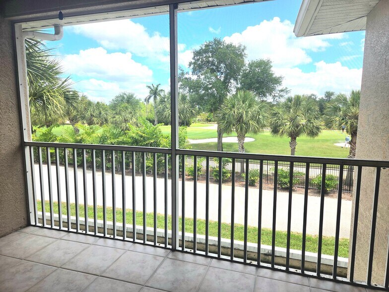 Enjoy a screened-in lanai overlooking the 10th hole of Cypress Lake Golf Club, plus access to the community pool.