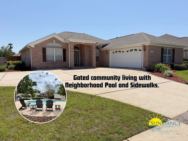 Conveniently located in the heart of Fort Walton Beach, this updated home offers both comfort and easy access—just 7 minutes from Hurlburt Field Air Force Base and 12 minutes from Eglin AFB. Situated on a quiet cul-de-sac in the gated community of Bridgeport Colony, the neighborhood features a community pool, sidewalks, and a central mailbox area, with lawn care included. This freshly painted home offers 3 bedrooms and 2 bathrooms, along with a 2-car garage equipped with automatic doors and additional driveway parking. Step inside to discover a thoughtfully designed floor plan that maximizes both space and privacy. The inviting and spacious living area, complete with recessed lighting, showcases new vinyl plank flooring, along with tile and carpet in two of the bedrooms, creating a clean and modern feel. The kitchen comes fully equipped with a breakfast bar, electric stove and oven, walk-in pantry, new dishwasher, refrigerator with ice and water dispenser, microwave, and a new garbage disposal. The primary bedroom features a tray ceiling, new flooring, dual sinks, a whirlpool tub, a separate shower, and a walk-in closet. Two additional bedrooms share a full bathroom. The laundry room includes a washer and dryer (as-is). Outside, you’ll find a versatile sunroom, an open patio, and a fenced backyard—perfect for relaxing or entertaining. HOA rules and regulations apply. Small Dogs only (15 lbs max) are accepted with a non-refundable $250 per pet plus a $50 admin fee (subject to owner approval) No smoking is permiited. In addition to the rental amount, all Sundance Rental Management residents are enrolled in the Resident Benefits Package (RBP) for $25.00/month, which includes liability insurance, credit building to help boost the resident’s credit score with timely rent payments, and much more! The benefits can be found on our website under Tenant FAQ.