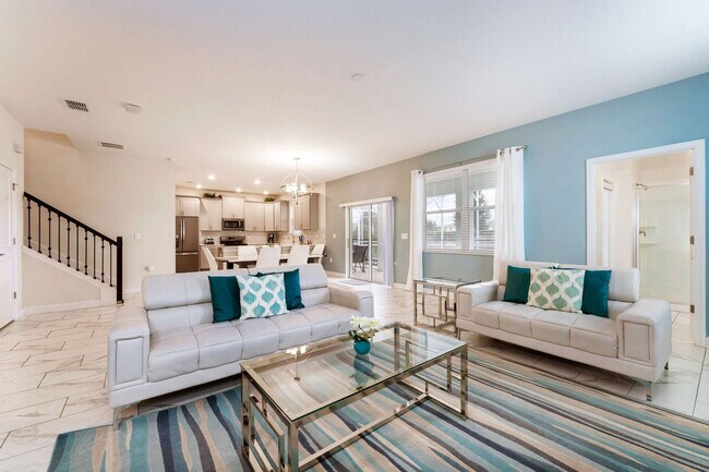 Welcome to your dream family getaway in this luxurious, brand-new 6-bedroom villa, perfectly situated in the heart of Champions Gate. Feel at home in this stunning oasis that serves as an ideal home base for your Orlando adventures. This stunning 6-bedroom home in Champions Gate is the perfect sanctuary for family gatherings and celebrations. The expansive downstairs living area features an open-concept layout that encourages togetherness, making it perfect for family game nights or sharing stories after a day of adventure. The fully equipped kitchen is a chef's delight, providing everything you need to prepare delicious meals. Outside, the private pool and spa invite you to unwind under the Florida sun. Pool and spa heating costs an additional $45 per night with a minimum of three nights. Contact the guest communication team after booking to request heating. Pets are welcome with a fee of $150 per pet per stay; weight restrictions apply. For stays of 20 nights or longer, a mid-stay cleaning will be scheduled every two weeks. You’ll find yourself close to Orlando's most popular attractions, including Walt Disney World and Universal Studios. The Oasis Club at Champions Gate is a vibrant resort community that offers an impressive clubhouse filled with exceptional amenities designed for relaxation and recreation. Guests can enjoy a movie room, a fun-filled games room, and a delightful grille room restaurant perfect for casual dining. For those looking to stay active, the fitness center and aerobics room provide ample opportunities to maintain your workout routine. Golf enthusiasts will appreciate the Champions Gate Country Club golf course, while families can take advantage of the full-service restaurant and Kids Club, ensuring entertainment for all ages. Quiet hours are between 10:00 pm and 7:00 am. Guests must be 25+ years old unless accompanied by a responsible adult. No parties or events are allowed. Only registered guests may stay overnight; a list must be sent prior to check-in. Vehicles parked in violation of parking rules may be towed immediately. Charcoal grills are strictly prohibited due to fire hazards; only propane grills are permitted. Using charcoal grills may result in a fine of up to $500 and eviction. [SI]