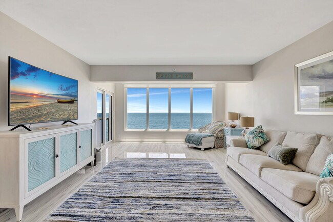 Welcome to this stunning oceanfront condo in Highland Beach! Annual furnished lease includes, electricity, water, cable & internet. This recently renovated two-bedroom, two-bathroom gem offers the ultimate beachfront living experience. With direct panoramic ocean views and access to private beach, you can enjoy the soothing sounds of the waves and breathtaking sunrises right from your doorstep. The interior has been completely redone, showcasing modern finishes, sleek design, and top-of-the-line appliances. Building has been redone with glass balconies, and is walking distance to Latitudes restaurant at The Delray Sands Resort. Whether you seek a serene retreat or an entertaining space, this oceanfront condo has it all. (MORE)