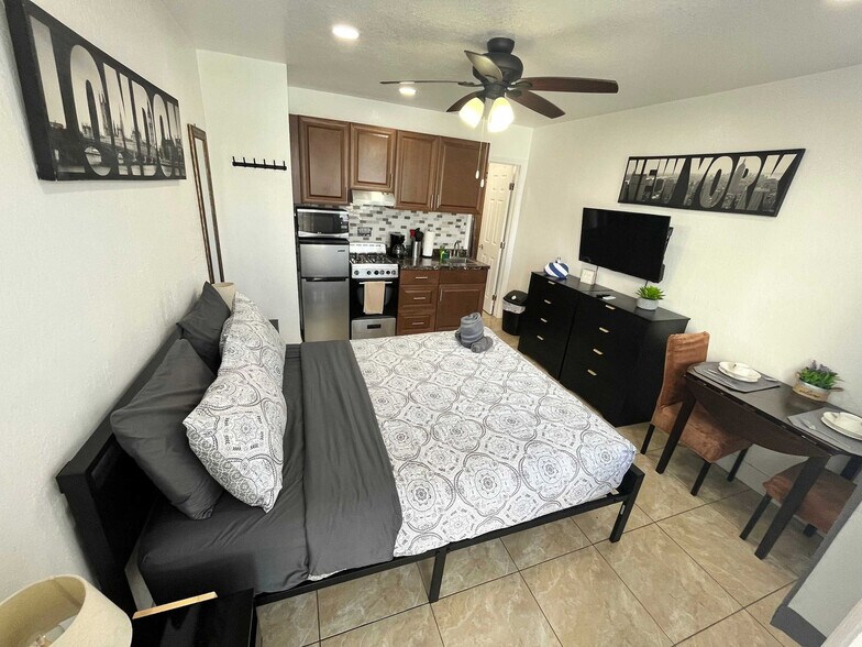 The advertised rate of $2,295/month is the lowest available price, based on a 30 day(s) stay with a move-in date of May 8, 2026. Rates vary depending on the duration of stay, season, and other parameters. For exact pricing and additional pricing components, please visit our website and enter your desired move-in and move-out dates. The rate is applicable when billed upfront; it can be higher if billed in multiple payments. Feel at home in this thoughtfully designed coastal studio, a peaceful retreat just moments from the beach. This bright, open studio is designed as a welcoming nest with soft neutral tones, clean tile floors, and subtle coastal accents. It features an open sleeping and living area with a comfortable bed and quality linens, a large Smart TV, a cozy dining area, and a fully equipped kitchen with modern cabinetry, granite countertops, gas stove, microwave, and full-size refrigerator. The fresh, modern bathroom is stocked with clean towels and essential toiletries. Strong Wi-Fi and efficient air conditioning ensure a comfortable stay year-round. Set in a calm residential area, this coastal studio is a short distance from beautiful beaches, local cafés, restaurants, neighborhood shops, major roads, convenient public transportation, popular attractions, and everyday essentials. Moving through the area is easy and convenient via car, rideshare services, or public transportation. Some local spots are walkable, while short drives lead to beaches, dining, shopping, and entertainment. Quiet hours are between 11 PM and 8 AM. Parties and events are not permitted. Includes a cozy dining area that works beautifully for remote work. [SI]