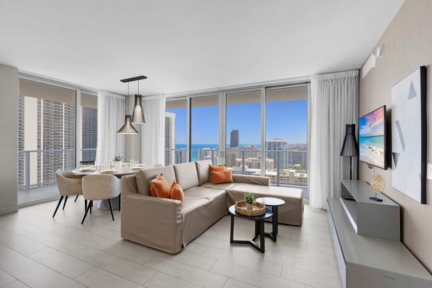 The advertised rate of $5,531/month is the lowest available price, based on a 30 day(s) stay with a move-in date of August 23, 2026. Rates vary depending on the duration of stay, season, and other parameters. For exact pricing and additional pricing components, please visit our website and enter your desired move-in and move-out dates. The rate is applicable when billed upfront; it can be higher if billed in multiple payments. Feel at home in this brand new luxury condo in front of Hollywood Beach, offering stunning bay and ocean views from a high floor. This well-appointed 2-bedroom unit mixes natural wood and stone with organic textures and state-of-the-art technology. Highlights include a fully equipped kitchen with stainless steel refrigerator/freezer, glass stove, integrated oven, silent dishwasher, integrated microwave, stove, dishes, and coffee maker. Additional amenities include 2 full bathrooms, a large corner balcony, hairdryer, electronic safe, iron/ironing board, in-unit washer/dryer, and TVs in each room. Amenities include two infinity-edge ocean and bay view pools, sundeck, private cabanas, fitness center, and hot tub. Valet parking is available for an additional fee: 1–6 nights ? $42 nightly, 7–29 nights ? $15 nightly ($105 weekly), +30 nights ? $9.33 nightly ($280 monthly). A pack’n play crib is available free upon request. Just beyond the resort, you'll find the Hollywood Beach boardwalk and miles of Blue Wave-designated beaches. Surrounded by lots of restaurants and the world-famous Gulfstream Park, where you can dine, enjoy horse races, or try your luck at the casino five minutes away. To the west, you can visit the famous colossal Hard Rock Guitar Hotel & Casino, and it is the perfect location to be on the beach if you are attending an event at Hard Rock Stadium. To the south, you can continue to the renowned Aventura Mall, or if you feel like going on an adventurous nightlife, you can head to South Beach to party all night. To the north, you can enjoy more shopping and restaurants in the city of Fort Lauderdale. The apartment is minutes from Fort Lauderdale Airport. For groceries, you will find a 24-hour Walmart right next door and a Publix Supermarket two minutes away. You are also welcome to use Instacart for grocery delivery. Swimming is at your own risk – no lifeguard on duty. Children must be supervised by a responsible adult at all times. No diving or running. The property management is not liable for any accidents, injuries, or losses that may occur while using the pool or surrounding areas. Please keep all doors closed and the air conditioning on at all times to help prevent condensation and property damage. A resort fee will be charged at check-in. [SI]