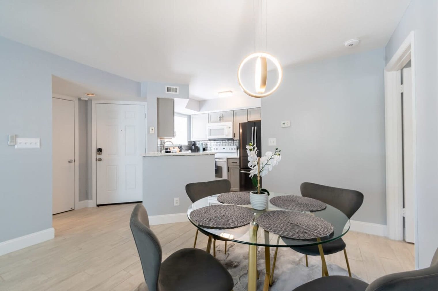 Experience a luxurious stay in this newly updated 2-bedroom, 2-bath condo located on the second floor of a resort-style community in Indian Harbour Beach. Feel at home with the convenience of walking to shops, restaurants, and public beach access, all just steps from your front door. Enjoy access to a large community pool, hot tub, and fitness center. This spacious condo boasts modern and sleek furnishings throughout, providing a comfortable and stylish ambiance for your stay. The living room features a plush sofa and a flat-screen TV, perfect for cozy nights in. The fully equipped kitchen includes all the essentials to fulfill your cooking and entertaining needs. The first master bedroom includes a king-size bed, an ensuite bathroom, and a personal balcony offering breathtaking views of the lush greenery of the resort-style community. The second master bedroom also features a queen-size bed and an ensuite bathroom, perfect for accommodating families or groups. The second bathroom also includes a shower and tub for added convenience. While we love all furry friends, only dogs are allowed at this property, with a fee of $100 per pet per stay. Situated in the heart of Indian Harbour Beach, this condo is the perfect spot for a beach vacation. Take a short walk to paradise with convenient access to the public beach. The area boasts endless restaurants and shops to explore, making it easy to relax and unwind. The resort-style community offers additional amenities like a large community pool, hot tub, and fitness center to make your stay unforgettable. Located off Eau Gallie Causeway and A1A, Uber and Lyft are very prevalent in the area, and shopping, restaurants, and the beach are within walking distance. Mailbox access is not available for guests. Quiet hours are between 22:00 and 8:00. To ensure a comfortable start to your stay, an initial stock of essentials such as paper towels, toilet paper, tissues, coffee pods, creamer, sugar, light cleaning supplies, garbage bags, sponges, dish soap, and dishwasher tabs is provided. If you need additional supplies during your stay, please plan to replenish them as needed. [SI]