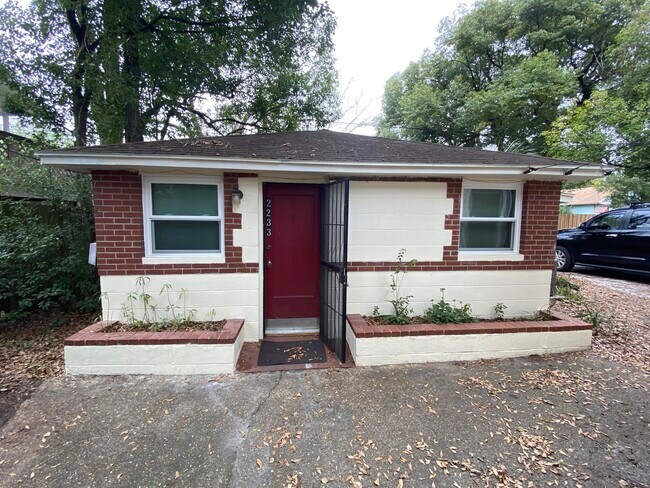 Cute & cozy back yard cottage in Riverside with recently replaced Windows/Screens,Newer vinyl plank flooring throughout,Refinished Bathtub w/tile enclosure,Office/Closet room,Breakfast counter,Central Heat & Air,1 Off-Street Parking Space next to unit,2 Ceiling Fans,Tankless Water Heater (saves $),Common Laundry Room on premises w/Coin-Op Washer & Free Dryer,Walking distance to 5-Points,Stockton Corridor,King St,Brewery District,and more. Very convenient to downtown. Range & Refrigerator provided. Water included in rent. Sorry,no pets.
