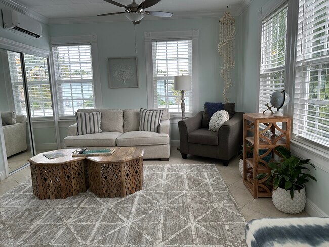 Bright and airy, centrally located in old town Key West. Second floor, fully furnished, high-ceiling apartment with lots of windows. Living room, bedroom, kitchen including granite counter tops, stainless steel appliances, refrigerator, oven, dishwasher and garbage disposal. Stackable W/D. Bathroom with Travertine tile. A/C and ceiling fans. Porch overlooking the garden. Rent includes all utilities including high-speed internet. Required to move in: First and last month - $3,300 apiece, Security Deposit - $2,000.