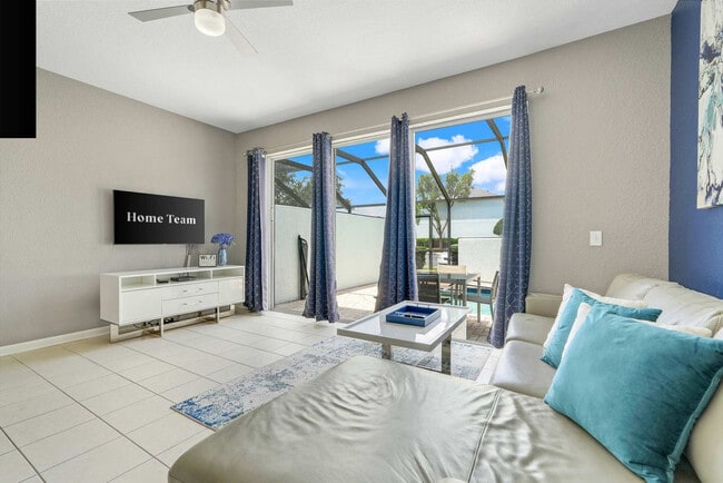 The advertised rate of $3,048/month is the lowest available price, based on a 30 day(s) stay with a move-in date of August 27, 2026. Rates vary depending on the duration of stay, season, and other parameters. For exact pricing and additional pricing components, please visit our website and enter your desired move-in and move-out dates. The rate is applicable when billed upfront; it can be higher if billed in multiple payments. Feel at home in this 3-bedroom home in a prime Kissimmee, FL location. This spacious townhome comfortably accommodates up to 10 guests, making it ideal for a family vacation, group adventure, or relaxing escape. Inside, you’ll find bright and inviting living spaces and a fully equipped kitchen. The kitchen features high-end stainless appliances, ample cabinetry, a large island with high seating, and a Keurig coffee maker. For entertainment, there are TVs in each bedroom, and the living room features a smart TV and a large plush sofa. A washer and dryer are also available for your convenience. Enjoy community access to a pool, gym, movie theater, arcade, and playground. Parking is available for 1 car. Located in the heart of Kissimmee within the Windsor Hills Resort, this home is just minutes from Walt Disney World, Universal Studios, world-class golf, shopping, and dining. Nearby attractions include Walt Disney World Resort (5 miles), Disney’s Animal Kingdom (4 miles), ESPN Wide World of Sports Complex (4 miles), Disney Springs (7 miles), and Epcot (7 miles). For dining, Drafts Sports Bar & Grill (2 miles), Giordano’s (2 miles), Sanaa (4 miles), The Cheesecake Factory (16 miles), and Shula’s Steak House (7 miles) are nearby. Renting a car is a convenient option to explore the area, and rideshare services like Uber and Lyft are readily available. Check-in is at 4pm and check-out is at 10am. No parties are allowed, and violations may result in immediate termination of the stay. An exterior camera is installed to monitor the cleaning team for quality and security purposes. Guests must be 21 years or older to book this property. [SI]