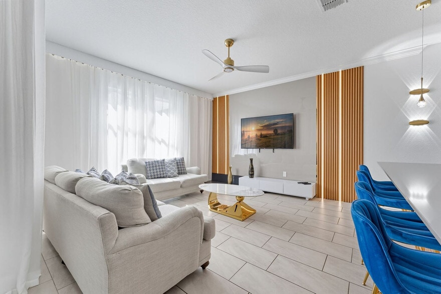 Feel at home in this newly renovated 4-bedroom townhome, stylishly designed for up to 13 guests. The open-concept living room, dining area, and fully equipped kitchen form a spacious hub where your group can gather, dine, and unwind in total comfort. Themed bedrooms bring extra magic to your stay. Enjoy free Wi-Fi and a laundry room. A welcome kit with essentials is provided, and guests are responsible for replenishing based on their use. Relax in your private, heatable pool or explore Storey Lake’s amazing amenities. Pool heating and BBQ grill rental are available for an additional fee. Complimentary parking is available. Storey Lake Resort is centrally located just 10 minutes from all major attractions and theme parks in Orlando, including Walt Disney World, Universal Resort, and Sea World. You will find fantastic resort amenities for the whole family to enjoy with a tiki bar, a resort-style pool with slides and lazy river, sports court, mini-golf, kayak, and fitness center. There are 2 clubs inside the property, one of them with a themed pirate pool that kids will love is just walking distance from the house. Located just off Osceola Parkway, the resort has easy access to restaurants, shopping, and supermarkets, all within a 5-minute drive. Walt Disney World is 5.2 miles away, Universal Orlando is 11.5 miles away, Walmart is 1.2 miles away, Burger King is 0.5 miles away, Wawa is 1.2 miles away, 7 Eleven is 0.6 miles away, Publix is 1.4 miles away, Target is 1.4 miles away, Walgreens is 4.7 miles away and CVS is 1.4 miles away. Quiet hours are between 10 PM and 8 AM. [SI]