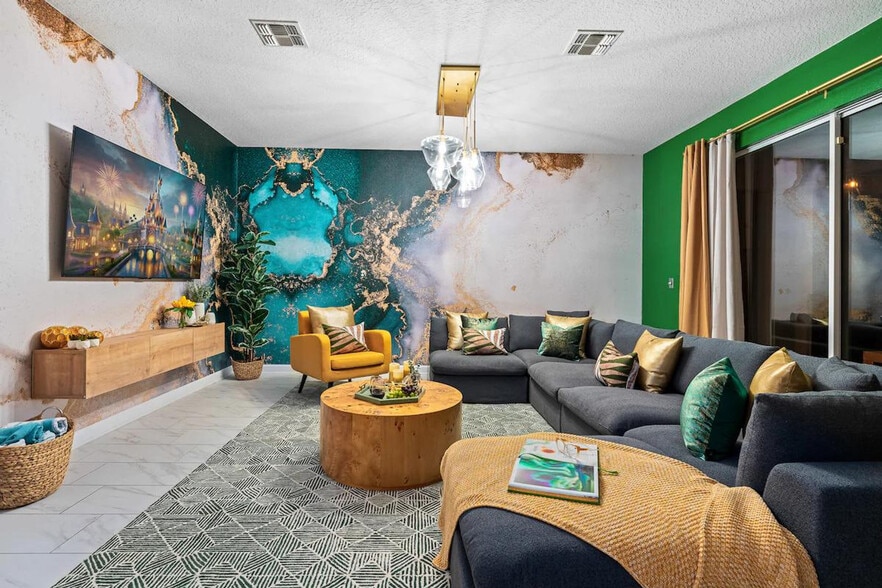 The advertised rate of $11,317/month is the lowest available price, based on a 30 day(s) stay with a move-in date of October 10, 2026. Rates vary depending on the duration of stay, season, and other parameters. For exact pricing and additional pricing components, please visit our website and enter your desired move-in and move-out dates. The rate is applicable when billed upfront; it can be higher if billed in multiple payments. Feel at home in this Storey Lake Resort home, just 7 miles from Disney. This home sleeps 18 and features 6 bedrooms. This family retreat features a Disney Villains movie theater with a 4K projector, reclining chairs, and Dolby 5.1 surround sound, and a Super Mario Bros game room with air hockey, ping pong, a Lego wall, and 2 Xbox 360 consoles. The fully equipped kitchen includes modern appliances, a microwave, toaster, blender, coffee machine, and all essentials. Enjoy the spacious living room with a plush sectional and 75" Smart TV, and a dining area that seats 8, plus 4 at the kitchen island. There are also in-unit washers and dryers, and central A/C and heating. Pool heat for the private heated pool and spa is available for $35 per day. Up to 2 dogs are welcome (within insurance-approved breeds) for a $150 pet fee. Guests are responsible for refilling the BBQ propane tank as needed. Walk to the Storey Lake Clubhouse with its water park and lazy river. This home is minutes from Disney (8 mi), Universal (15 mi), and SeaWorld (10 mi). Guests are responsible for refilling the BBQ propane tank as needed during their stay. Please keep pets leashed outside, crate them if left unattended, and be sure to clean up after them. During the winter season (Dec 21 - Mar 20), if the external temperature is too low, the pool heating may not reach expected levels. Travel insurance is highly recommended, especially during Florida's Hurricane Season (June 1 - November 30). Includes a dedicated workspace perfect for remote work. [SI]