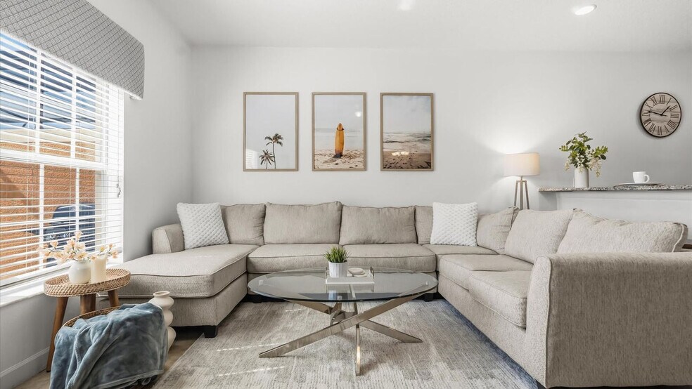 Feel at home in this 4-bedroom, 3-bath townhome in Kissimmee's Paradise Palms Resort, perfect for families and groups seeking fun and relaxation near Disney. With space for up to 8 guests, this home combines comfort, convenience, and entertainment. This stylish home offers a spacious open-concept living area with a Smart TV and Xbox, and a fully equipped kitchen with stainless steel appliances. There is indoor dining for 8 and breakfast bar seating for 4. Enjoy the in-unit washer and dryer, central AC and heating, and high-speed Wi-Fi. Enjoy access to resort-style amenities like a clubhouse with a pool, lazy river and kids’ splash zone, hot tubs, tiki bar and grill, fitness center, arcade, playground and sports courts, café, restaurant and movie theatre. Pool heating is available for $35 per night with a 2-night minimum. A BBQ propane tank is available for $55 delivered. A Pack 'N Play crib and highchair are available for rent for $40 each. Located just minutes from shopping, dining, and Orlando’s top attractions, this home offers the perfect balance of adventure and relaxation. Nearby attractions include Magic Kingdom Park, EPCOT, Disney’s Hollywood Studios, Disney’s Animal Kingdom, SeaWorld Orlando, Universal Studios Florida and The Florida Mall. A car is recommended to make the most of your stay. Rideshare services like Uber and Lyft are widely available for trips to local dining, shopping, or theme parks if you prefer not to drive. Orlando International Airport (MCO) is approximately 16 miles away by car, while Orlando Sanford International Airport (SFB) is about 39 miles away. Local grocery stores, pharmacies, and restaurants are just a short drive from the resort, providing convenient access to everything you might need during your stay. Parties, events, and smoking/vaping are prohibited in or around the property. Late departures will result in a charge for each additional hour the property cannot be accessed for turnover. Outside of service animals, pets are not permitted at this property, and any evidence of pets will result in a fine and/or forfeiture of your full deposit. Firearms and weapons are strictly prohibited on the property. Quiet hours are between 10 PM and 8 AM. Paradise Palms Resort applies a $10 fee per package for short-term rental guests when collecting delivered items. Long-term stays of 6+ months are exempt from this fee. [SI]