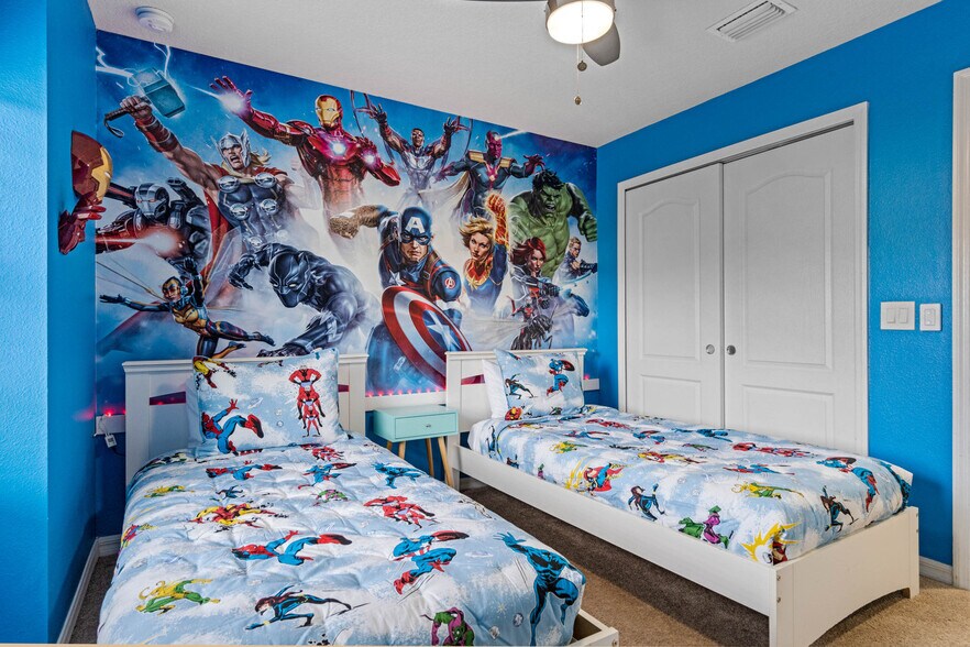 Feel at home in this relaxing Kissimmee retreat, perfect for families and groups exploring nearby parks and attractions. This 5-bedroom home sleeps 12 and features 4.5 baths. This spacious home features a private swimming pool with a heating option, a game room with foosball, air hockey, and pinball, and a full kitchen equipped with stainless steel appliances and cooking basics. A washer, dryer, bathroom essentials, and bed linens are provided for your convenience. Enjoy meals in the formal dining area or in the additional indoor and outdoor dining spaces. Pool heating is available for $35 per day, and at least one week's notice is requested for this service. Up to 2 dogs are allowed on the property with a pet fee of $150 per dog. Located in the Windsor at Westside resort community, this home offers access to a range of amenities, including a water park, heated pool with a lazy river, a fitness center, and a large clubhouse. Volleyball and basketball courts, a splash pool for kids, a hot tub, and various outdoor spaces add to the experience. The property is located just a short distance from the clubhouse and near plenty of dining, shopping, and world-famous attractions. Quiet hours are between 10:00 PM and 8:00 AM. There is absolutely no smoking and no drugs allowed inside the home or elsewhere on the property. If you stay beyond your scheduled check-out time, a fee of up to $300 may apply. Failure to take out the trash and dispose of it properly per instructions upon departure can result in fines up to $300. A dedicated workspace is available. [SI]