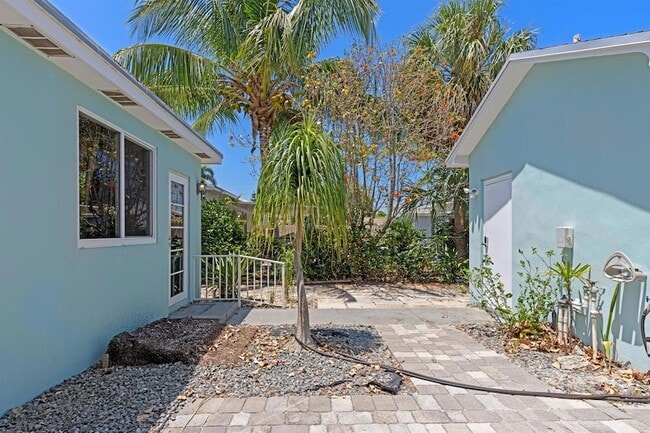 Northeast Lake Worth Beach. The home can be used as a three bedroom. The third bedroom is a convertible den / office with its own bathroom and entrance. There is a large detached garage with laundry. There is also room to park a boat at this house. The property has a complete set of impact glass, doors and windows, natural gas, stove, and water heater, and the yard is completely fenced.