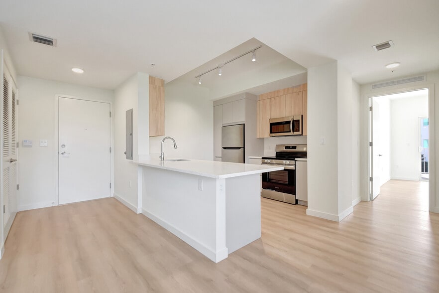 Experience modern coastal living in the heart of Lake Worth Beach. This stylish residence offers an open-concept layout with high-end finishes, abundant natural light, and a private balcony perfect for enjoying the Florida breeze. Inside, you’ll find a designer kitchen with granite countertops, stainless steel appliances, and an island ideal for entertaining. Elegant hardwood flooring, spacious walk-in closets, and in-unit washer and dryer add to the comfort and convenience. Enjoy resort-style amenities including a rooftop terrace, 24/7 state-of-the-art fitness center, yoga studio, resident lounge, business center, and children’s play room. Also offers gated access, EV charging stations, package services, and on-site management. Outdoor spaces feature a sundeck, courtyard, grilling areas, and lush landscaping.