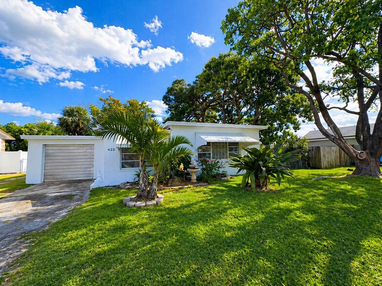 Located in a central location, this house provides one level of living space with wood and laminate floors. The kitchen is equipped with essential appliances including an electric range and dishwasher. A stacked bedroom layout ensures a simple floor plan. Residents can enjoy an oversized lot featuring a garden and mature fruit trees. The attached garage includes laundry hookups and a washer and dryer. All rooms are located on the main level for easy access without any interior stairs (Listing Courtesy of Atlantic Florida Properties Inc).