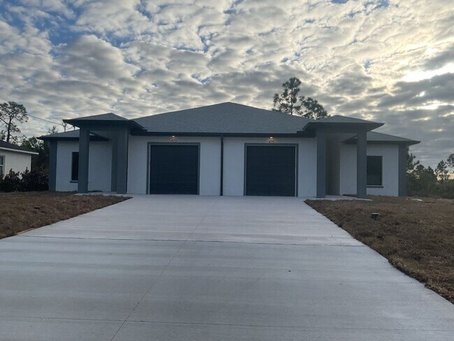 Welcome to 473/475 Linden Ave S in Lehigh Acres — a brand-new 1,196 sq ft duplex designed for modern Florida living. Each unit features 3 bedrooms, 2 full bathrooms, and thoughtfully upgraded finishes throughout. Step inside to an open-concept floor plan with a spacious living and dining area that flows seamlessly into a stylish kitchen complete with contemporary cabinetry, quality countertops, and sleek fixtures. The primary suite offers a private retreat with an en-suite bathroom and generous closet space, while two additional bedrooms provide flexibility for family, guests, or a home office. Enjoy the convenience of an attached garage, interior laundry area, and durable finishes built for both comfort and longevity. Out back, a private patio creates the perfect space for relaxing or entertaining. By submitting your information on this page you consent to being contacted by the Property Manager and RentEngine via SMS, phone, or email.