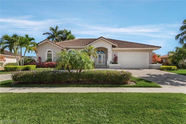 Paradise awaits you in this new to the market and just furnished private Marco Island home with breathtaking water views and heated swimming pool conveniently located near restaurants, shopping and pristine white sugar sand beaches. Comfortable and great entertaining open floorplan in this spacious home with soaring ceilings in the living room and dining area. The gourmet kitchen with stainless steel appliances/granite counters is centrally located to all the living areas with pass through window to lanai. Family room with breakfast nook overlooks kitchen area. Retire in a spacious master bedrm with walk-in closet, large shower, jacuzzi spa tub with sliders to lanai area. Guest wing includes two bedrooms with privacy pocket doors and full hall bath that also leads to pool area. Spend relaxing time on your private two tier lanai with southern exposure, heated pool and beautiful water and dock views. Home is fully equipped with smart TVS in bedrooms and family room. High speed internet for working remotely. Come enjoy your new HAPPY PLACE!