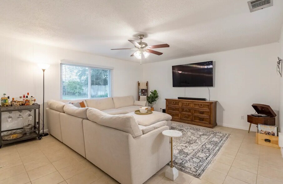 Beautifully Furnished 3-Bedroom, 2-Bathroom Home with Office & Backyard Oasis 10 Minutes from the Beach Welcome to your dream rental! This fully furnished 3-bedroom, 2-bathroom home has everything you need for comfort, relaxation, and convenience whether youre here short-term or long-term. With bright living spaces, modern amenities, and a prime location close to downtown and the beach, its the perfect place to call home. Bedrooms & Bathrooms Master Suite: A peaceful retreat with a split king Tempur-Pedic adjustable bed, en-suite bathroom with shower, large Roku TV, and a window overlooking the front yard. Yellow Room (Bedroom 2): Cozy queen bed, mini fridge, dresser, Roku TV, closet, and front yard view. Green Room (Bedroom 3): Queen bed, closet, Roku TV, and backyard views. Guest Bathroom: Conveniently located near bedrooms 2 & 3, featuring a bath and window overlooking the back porch and yard. Office Space Perfect for remote work includes a large desk, office chair, monitor, and whiteboard to keep you productive. Kitchen & Dining Fully equipped kitchen with all appliances and cooking essentials. Dining room seats four comfortably, with room to expand for guests. Living Room Bright and welcoming with a big comfy couch, large Roku TV, bar cart, and stunning windows looking out onto the porch and backyard. Outdoor Living Back Porch: Covered seating area plus a pergola with a cozy patio couch and storage coffee table. Backyard: Fully fenced with a tree swing and fire pit perfect for smores nights under the stars. Front Porch: Two rocking chairs and a table for slow mornings with tea or coffee. Location, Location, Location! Just down the street from a park with basketball courts, dog park, playground, and sports fields. Walk to local restaurants and downtown, or take a quick 10-minute drive to the beach. This home offers the best of Florida living comfort inside, fun outside, and a fantastic location in the heart of it all!