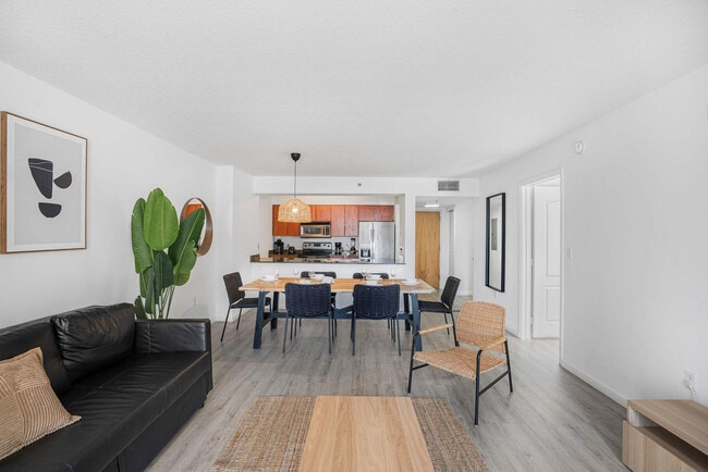 The advertised rate of $5,039/month is the lowest available price, based on a 30 day(s) stay with a move-in date of August 14, 2026. Rates vary depending on the duration of stay, season, and other parameters. For exact pricing and additional pricing components, please visit our website and enter your desired move-in and move-out dates. The rate is applicable when billed upfront; it can be higher if billed in multiple payments. Discover your peaceful oasis in vibrant Brickell with this elegant condo offering stunning skyline views. The calm, modern design is perfect for work or leisure, and its prime location is just steps from Brickell City Centre and Publix. Situated minutes from Wynwood, Design District, and South Beach, and only 15 minutes from Miami International Airport, you'll feel at home with effortless access, comfort, and convenience during your stay. This modern condo is designed for the perfect Miami getaway, featuring two queen-size beds for restful sleep, a spacious living room with a sofa bed and smart TV, a fully equipped kitchen with a dining table for four, and a private balcony with stunning city, pool, and bay views. Enjoy the convenience of an in-unit washer and dryer and one free parking spot. A virtual fob can be purchased at the front desk for approximately $10, available daily from 8 AM to 10 PM. Stay in the heart of Miami’s vibrant financial district, steps from top attractions, dining, and nightlife. Nearby highlights include Brickell City Centre for luxury shopping and fine dining, Mary Brickell Village with trendy cafes and open-air restaurants, and Bayfront Park for waterfront walks and outdoor events. The Kaseya Center and Miami Beach are just a short drive away, making this a prime Brickell location to explore the best of Miami. No parties or loud gatherings are allowed, and violation may result in fines by building management. Check-in is at 4:00 p.m. and check-out is at 11:00 a.m. Late check-out requests require 24 hours' notice and may incur an additional cost. Smoking inside the property is strictly prohibited, with a $300 fine for any evidence of smoking. Quiet hours are from 10:00 p.m. to 8:00 a.m. Please turn off the air conditioning when leaving the unit to maintain an energy-efficient environment. The condo offers a calm, modern design suitable for work or leisure, ensuring a comfortable environment for remote work. [SI]