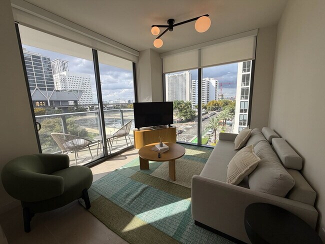Feel at home in this modern condo located in the heart of Miami Worldcenter. Designed for comfort, style, and modern living, this condo features a bright, open-concept living area with a comfortable sofa bed, a fully equipped kitchen with sleek appliances and premium finishes, and a dining area perfect for shared meals or remote productivity. Enjoy access to luxury amenities, including a private balcony and a fully equipped fitness center. Take a dip in the rooftop pool with skyline views. Early check-in is available upon request and subject to occupancy for an extra fee. With all the best of Miami at your fingertips, this condo is steps away from Bayside Marketplace, Kaseya Center, Skyviews Miami, and Bayfront Park. Explore waterfront promenades, live music, shopping, and local cuisine at Bayside Marketplace. Visit Kaseya Center, home of the Miami Heat and a venue for major concerts and events. Enjoy spectacular views from Skyviews Miami, the city's most famous observation wheel. Relax, exercise, or enjoy a picnic with a view at Bayfront Park. The Pérez Art Museum (PAMM), Frost Museum of Science, Miami Riverwalk, and Brickell & Mary Brickell Village are also nearby. Smoking is strictly prohibited on the entire property, including inside the unit and on the balcony. A $300 fine applies if violated. Reservations must be made by a person who is 21 years old, and the reservation holder’s presence is required throughout the entire stay. [SI]