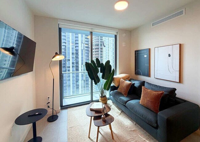The advertised rate of $4,540/month is the lowest available price, based on a 30 day(s) stay with a move-in date of August 5, 2026. Rates vary depending on the duration of stay, season, and other parameters. For exact pricing and additional pricing components, please visit our website and enter your desired move-in and move-out dates. The rate is applicable when billed upfront; it can be higher if billed in multiple payments. Enjoy the best of Downtown Miami from this stylish condo, perfect for couples, business travelers, or anyone looking for comfort in a prime location. Feel at home in a modern space with beautiful city views. This apartment features large windows that provide natural light and city views, a bedroom with a queen bed for a comfortable rest, a living room with a sofa bed, a full, modern, and functional bathroom, a fully equipped kitchen for preparing meals, and an in-unit washer and dryer for added convenience. A late check-out until 12:00 PM can be arranged for an additional $50, subject to availability. Live in the heart of Miami, with everything at your fingertips, including Bayside Marketplace for shopping, dining, and entertainment, the Pérez Art Museum Miami (PAMM) for contemporary art and international exhibitions, the Kaseya Center (formerly American Airlines Arena) for concerts, sporting events, and live performances, the Metromover and MetroRail for fast public transportation to Brickell and Wynwood, top-notch restaurants and cafes, and parks and green spaces. This apartment also offers quick access to Miami International Airport, the Port of Miami Cruises, Wynwood, and the Design District. Getting around Miami is quick and easy with the Metromover station steps from the building, the MetroRail for quick access to the airport and suburban areas, cars and rideshares available 24/7, the Miami Cruise Port a short drive away, and multiple nearby local bus routes. Smoking is strictly prohibited on the entire property, including inside the unit and on the balcony, and violating this rule may result in a $300 fine. Please respect quiet hours and avoid loud noises, as this is a residential building. No garbage accumulation is allowed, and please use designated trash containers. Please do not put cardboard or bulky items down the chute. Reservations must be made by a 21 years old person, and the reservation holder´s presence is required throughout the entire stay. Standard check-in is at 4:00 PM, and check-out is at 11:00 AM. Any damages will result in additional charges. [SI]