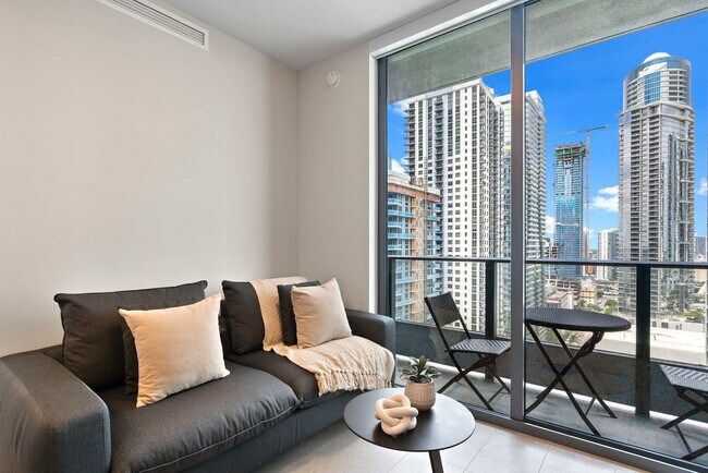 The advertised rate of $5,763/month is the lowest available price, based on a 30 day(s) stay with a move-in date of May 7, 2026. Rates vary depending on the duration of stay, season, and other parameters. For exact pricing and additional pricing components, please visit our website and enter your desired move-in and move-out dates. The rate is applicable when billed upfront; it can be higher if billed in multiple payments. Feel at home in this modern 1-bedroom + Den apartment in Downtown Miami, ideal for couples, professionals, or travelers seeking urban luxury and a central location. This apartment offers spectacular city views and access to resort-style amenities, ensuring an unforgettable stay. This apartment features a master bedroom with a queen bed and a private bathroom, a den with a sofa bed ideal for an additional guest, and a living room with another sofa bed, perfect for more guests. For added convenience, there are two full bathrooms. The fully equipped kitchen is ready for preparing your meals, complemented by a convenient and comfortable dining area. An in-unit washer and dryer are provided, along with fast Wi-Fi for work or entertainment. Upon arrival, the apartment will be stocked with basic supplies to ensure a smooth and comfortable start to your stay. A late check-out until 12:00 PM can be arranged for an additional $50, subject to availability. Live in the heart of Miami, with everything at your fingertips. This centrally located apartment is just steps from Bayside Marketplace, offering shopping, dining, and entertainment. Explore contemporary art at the Pérez Art Museum Miami (PAMM) or catch concerts and sporting events at the American Airlines Arena. Public transportation is easily accessible with the Metromover station steps from the building, connecting you to Brickell, Bayside, and other key Downtown locations. The MetroRail provides quick access to the airport and suburban areas. Enjoy top-notch restaurants and cafes, as well as parks and green spaces perfect for outdoor relaxation. Quick access to Miami International Airport is just a 15-minute drive, and the Port of Miami Cruises is a short drive away, ideal for Caribbean adventures. Wynwood and the Design District, with their street art and luxury boutiques, are just minutes away. Smoking is strictly prohibited on the entire property, including inside the unit and on the balcony. Violating this rule may result in severe fines. All guests are required to be registered; provide the full names and ID of all guests who will be entering the property and present their ID at the front desk during check-in. Reservations must be made by a person at least 21 years of age, and the reservation holder's presence is required throughout the entire stay. A $300 fine applies if the no-smoking policy inside the apartment or building is violated. Respect quiet hours and avoid loud noises, as this is a residential building. Do not accumulate garbage; use designated trash containers. Do not put cardboard or bulky items down the chute, as this may cause blockages. Be careful when throwing items down the chute, as mistakenly discarded items cannot be retrieved by staff. Do not leave any trash, bags, or furniture in the trash chute area, hallways, or hung outside the doors. Break down any cardboard boxes and place them inside the designated recycling bin located in the loading dock area. Standard check-in is at 4:00 PM, and check-out is at 11:00 AM. Failing to meet the checkout time may incur an extra night charge. Washcloths are not provided. Handle all objects and equipment with care, as any damages will result in additional charges. [SI]