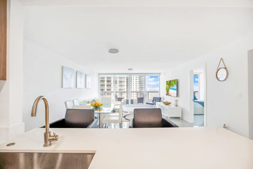 Feel at home in this fabulous 4-bedroom apartment in a trendy and hip area of Miami, located in a high-rise building overlooking miraculous Biscayne Bay and downtown Miami. This 1,840 square feet apartment features a large balcony overlooking Biscayne Bay, 400Mbps Wi-Fi, and a dedicated workspace. The building offers a state-of-the-art gym, on-site gourmet restaurants, and luggage storage upon check-in/check-out with bellman service. Parking is available for $200 for the entire duration of your stay, and the parking request must be made right after booking and no later than 24 hours before check-in. Parking for each additional vehicle is $200 per month, subject to availability, and advance notice is required. Daily valet parking is also available for $48, payable directly to the building each day. Centrally located in Edgewater, this apartment overlooks Biscayne Bay and is an 8-minute drive to South Beach, where you can see cruises at The Port of Miami and Star Island. A short walk will take you to Lincoln Road Mall and the Art Deco architecture of Ocean Drive. Wynwood is just 5 minutes away, and Brickell City Center and the Design District are each 2 miles away. The Arsht Center and Kaseya Center are also nearby, and Downtown Miami's nightclubs are within walking distance. Smoking is permitted on the balcony only with all doors closed. If there is evidence of smoking indoors, a minimum $500 fine will be applied plus costs for odor removal and deep cleaning. Guests must be 21 years of age or older to make a reservation, in compliance with building regulations. Standard check-in time is 4 PM and is coordinated with both us and the building. If your flight is delayed and you’ll be arriving after 10 PM, please let us know in advance so we can make the necessary arrangements. Standard check-out time is 11 AM. If any streaming devices or remotes are missing from our apartment after your departure, we have a right to charge you $100 per missing item. Visitors are only permitted for reservations that are 28 days or longer. For shorter stays, no visitors are allowed, and unregistered guests will result in immediate eviction with no refund. [SI]