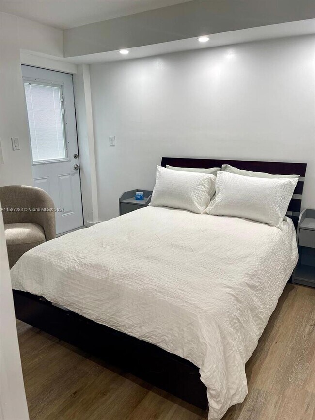 Furnished studio with fully independent bathroom and kitchen. Queen-size bed, small table and computer desk. It features a separate entrance and 1 assigned parking space. Next to I95, 5 minutes away to Aventura Mall, 10 minutes away to Sunny Isles Beach. Pets are not allowed. Only woman is accepted as a tenant. Water, electricity and Internet included.