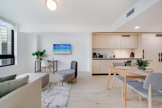 Feel at home in this calm, considered retreat in the heart of downtown Miami. Light-filled interiors and clean lines set a soothing tone, offering balance, comfort, and quiet luxury. This apartment features access to spa-like amenities, including a sauna and steam room. The kitchen is equipped with modern appliances, including a full-size fridge, oven, stove, coffee machine, electric kettle, toaster, and essential cookware. Additional amenities include a resort-style pool deck, a state-of-the-art fitness center, a yoga/spinning room, a co-working floor featuring private meeting rooms, and a rooftop amenity deck with a plunge swim spa. Also includes Wi-Fi, smart TVs, an ironing set, and laundry facilities. Pets are welcome with a $150 fee per pet, and advance notice of the number and weight of pets is required. Nearby parking garage is included, but all vehicles must be moved every 24 hours or they will be towed. "Moved" means exiting and re-entering the garage, not just switching parking spots. District 225 is perfectly situated in the heart of Miami’s extraordinary social, cultural, culinary, and sporting offerings, a short distance from Miami Beach, Brickell, Wynwood Arts District, and the Design District. By car, Brickell City Centre is only 10-15 minutes away, the Design District and South Beach are about 20 minutes, and Miami International Airport is around a 25-minute drive. There is also a free metromover 3 blocks away, and Uber/Lyft are affordable and convenient options. Strict no-smoking policy and low noise levels are expected post 10 PM. Parties and large gatherings are prohibited. The number of guests cannot exceed those specified at booking. No additional visitors or overnight guests are allowed without prior approval, and violations incur a $50 fee per person. All guests must be 21 years or older unless accompanied by a parent or pre-approved. No underage drinking, drugs, marijuana (medical or recreational), or vaping are allowed, and any smoke smell will incur a $100 cleaning fee. Check-in is after 4 PM, and checkout is before 11 AM. Concierge services are available upon request to rent a boat, engage a chef, or book a massage. Housekeeping is available during your stay upon request and at your cost. Fines may be assessed for excessive cleaning, trash removal, and property damage. [SI]
