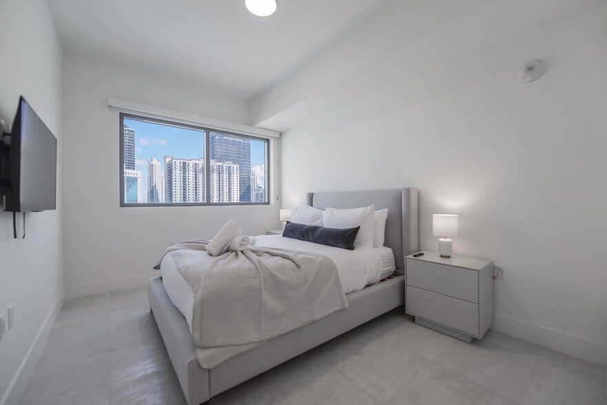 Welcome to your luxury 2-bedroom plus den retreat in the heart of Brickell! This modern apartment offers stunning skyline views and places you in the center of Miami's most dynamic neighborhood. Relax by the resort-style pool after a day of exploring. Step into this stylish and modern 2-bedroom plus den apartment, thoughtfully designed to be your comfortable home away from home. Enjoy your morning coffee or an evening cocktail on the private balcony while taking in breathtaking skyline views. The primary bedroom features a comfortable queen-size bed and a TV for a relaxing stay, while the second bedroom offers another cozy queen-size bed. The flexible den includes a sofa bed for extra guests, and the living room has another sofa bed and a Smart TV, perfect for unwinding. The kitchen is fully equipped with modern appliances and all the essentials you need, and in-unit conveniences include a washer and dryer and one assigned parking spot. One assigned parking spot is included. Your apartment is in the heart of Brickell, Miami's vibrant financial district, putting the city's best dining, shopping, and entertainment right at your doorstep. Steps from world-class shopping at Brickell City Centre and surrounded by acclaimed rooftop bars like Sugar and Rosa Sky. A short walk to iconic dining, from casual bites at La Sandwicherie to upscale dinners at Komodo. Escape to the serene tropical trails of Simpson Park Hammock or take a scenic walk along the water at Brickell Key Park. Getting around from this central location is incredibly easy, with or without a car. This is a walker's paradise, with Brickell City Centre, Mary Brickell Village, and dozens of top-rated restaurants and bars just a short stroll away. The free Metromover station is just an 8-minute walk away, offering quick and easy connections throughout Downtown and Brickell. You have easy access to major highways, putting Miami Beach and the Miami International Airport within a 20-minute drive. For your convenience, a large and well-stocked Publix Super Market is located just a few blocks away in Brickell Village. The primary guest on the reservation must be 21 or older and must be the first person to check in at the front desk. Loud music, parties, and excessive noise are strictly prohibited, and violations may result in significant fines from building management, which will be charged to the guest. There is ongoing construction next to the building, which may result in occasional daytime noise. Always display your parking permit, as we are not responsible for towed vehicles, theft, or damage in the garage. We provide a starter kit of supplies for your first day, but washcloths are not provided. Quiet hours are between 10:00 p.m. and 8:00 a.m. Register all members staying with us by providing a photo ID on the same day as check-in. Check-in is scheduled for 4:00 p.m., and check-out is at 11:00 a.m. If you need a late check-out, please contact us with 24 hours' notice, as this will generate an additional cost. Package deliveries to the property address are not allowed. In case of any lost linens or apartment keys, an additional cost will be charged to replace them. Turn off the air conditioning when leaving to maintain a comfortable environment for everyone. Smoking is not allowed indoors, as it may result in a fine. [SI]