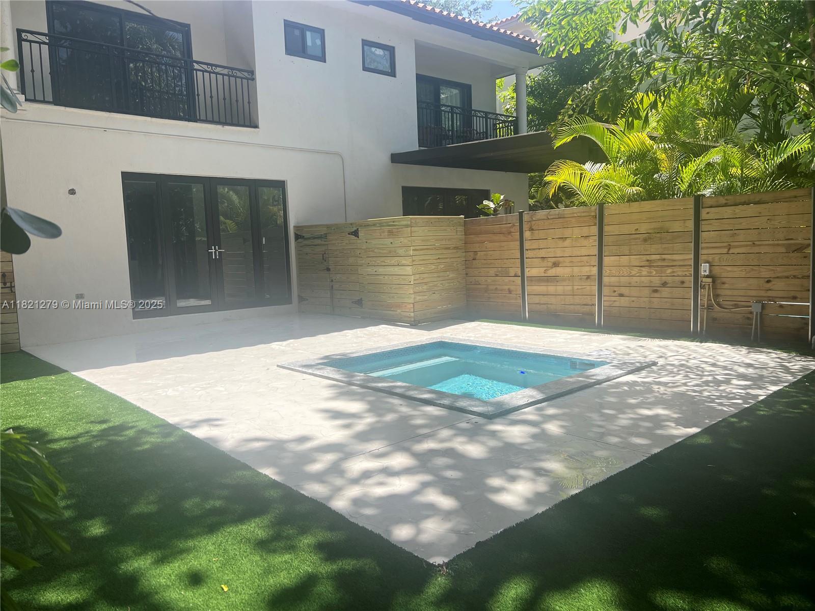 Stunning and fully remodeled 3-bedroom, 2.5-bathroom townhouse located in the heart of Coconut Grove. Walking distance from A rated schools, Blanche Park and CocoWalk, this home offers the perfect blend of luxury, comfort, and convenience for modern living. Step into a light-filled, open-concept space featuring a chef's kitchen with elegant Taj Mahal quartzite countertops, sleek cabinetry, and premium stainless steel appliances perfect for cooking, entertaining, and everyday living. The garage has been thoughtfully converted into a spacious extra room that can serve as a guest bedroom, playroom, home gym, or office. Outside, enjoy your own private pool surrounded by tropical landscaping, a peaceful oasis right in the city.