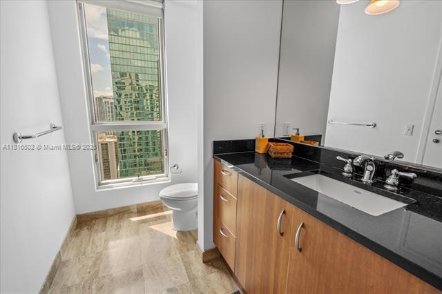 Beautiful and spacious 2-bedroom, 2-bath unit in the heart of Brickell with stunning water and city views. Features include wood flooring, a split floor plan, granite countertops, in-unit washer/dryer, and a large balcony. Prime location within walking distance to top restaurants, shopping, and entertainment. The building offers a luxurious lifestyle with 24-hour front desk, valet parking, concierge, business center.