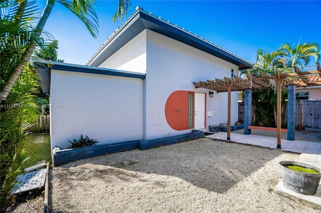 This art-deco style home is sure to impress! Unique design, massive windows and beautiful exposed wood ceilings envelop this lofted single-family home, right in between Coral Gables and Coconut Grove. Just minutes from US1, Brickell, Downtown, University of Miami, Miami International Airport and plenty more! Large, fenced yard with space to entertain friends and family, or to grow a small garden. This single-family home includes a washer and dryer, updated windows and doors, and a solar panel outfitted roof. Property includes one covered parking spot and is pet friendly (with restrictions and deposit).