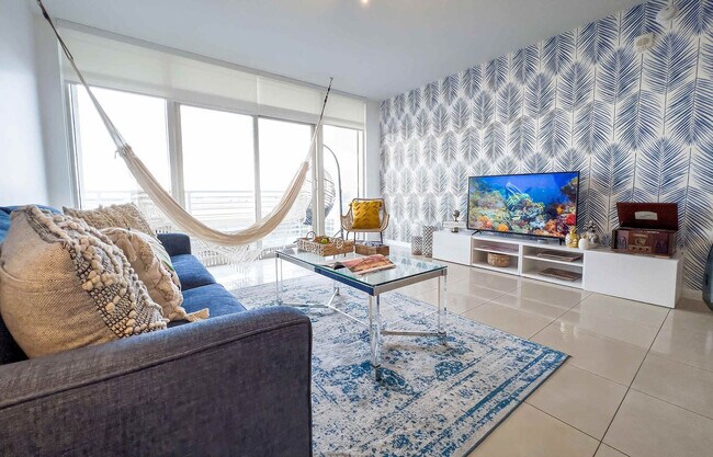 Welcome to Palm Place! Feel at home in this spacious apartment centrally located in Miami. This lovely apartment can host up to 4 people and features a kitchen equipped with all you'd need to cook a meal, including a coffee machine, pots, pans, and an island with seating for 4. Enjoy amenities such as a beach umbrella and chairs, pool towels, a putting green, a 24-hour front desk, and two elevators. The barbecue area is perfect for an afternoon grill session. Covered garage parking is included with a clearance of 6’8". EV charging is available. Pets are welcome with a $150 fee per pet. Please check with us for weight and size restrictions. A one-time fee of $50 per guest or family unit is payable at the front desk upon check-in. The property is a short drive to Miami Beach, 8 minutes from Miami International Airport (35 minutes from Fort Lauderdale–Hollywood International Airport), and a short stroll to Miami’s Design District, a treasure trove of luxury fashion boutiques, edgy art galleries, and trendy restaurants. With many restaurants, bars, shops, and entertainment just downstairs, Wynwood and The Design District are minutes away. Midtown is special because it's all a brand new development, so the restaurants and apartments are very modern and new. There is so much dining variety within walking distance, and with parking being so convenient, you can drive to the beach in 5 minutes. There are many transportation options, from the free trolley to Uber, and with parking included, you can easily drive anywhere. There are 3 public bus lines that pick up in Midtown as well. Check-in is any time after 4 PM, and check-out is any time before 11 AM. An early check-in or late check-out time may be available; please inquire about pricing a few days before check-in for availability. Self check-in is at the front desk. Strict no-smoking policy, low noise level post 10 PM, and parties and large gatherings are prohibited. The number of guests cannot exceed those specified at booking. No additional visitors or overnight guests are permitted without prior approval; violations incur a $50 fee per person, and your stay may be terminated without refund. All guests must be 21 years or older unless accompanied by a parent or pre-approved. No underage drinking, drugs, marijuana (medical or recreational), or vaping. Any smoke smell will incur a $100 cleaning fee. Respect the residential area and noise ordinance between 10 PM and 8 AM; violations may result in police visits and immediate eviction. Includes a work desk in the bedroom. [SI]