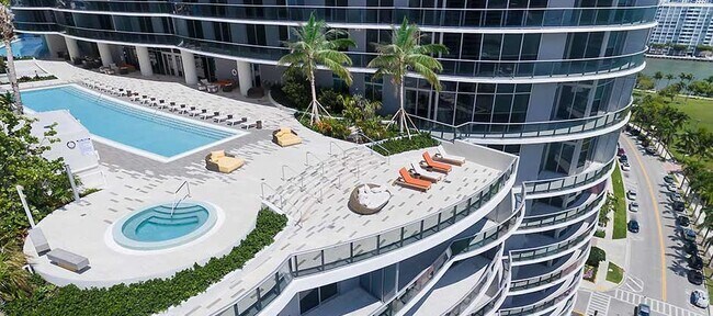 Aria on the Bay condos is a luxury high-rise development located in Edgewater Miami at 488 NE 18th Street. Developed by Melo Group and designed by Arquitectonica, Aria on the Bay rises 53 stories, offering spectacular views of the water and city. The development was completed in April 2018 and has 648 units comprised of one-, two-, and three-bedroom floor plans plus penthouses (see Aria on the Bay floor plans). Each condo residence at Aria on the Bay has 9-foot ceilings with floor-to-ceiling windows, 32 x 32 porcelain flooring throughout, white quartz countertops, Italian wood cabinets by Italkraft, and stainless steel kitchen appliances by Bosch.