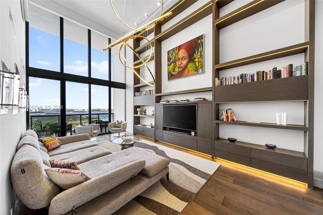 A rare two-story PH in Miami’s highly sought-after Edgewater neighborhood. This expansive 2-bedroom, 2.5-bath residence offers over 2,000 square feet of living space, soaring 22-foot ceilings, abundant natural light, and unobstructed Biscayne Bay views. A unique floor plan—unlike any other in the building—provides exceptional scale and privacy with just one shared wall. Open-concept living and dining areas flow to a private balcony, ideal for seamless indoor-outdoor entertaining. Custom built-ins, a sleek bar with a Subzero wine refrigerator and dedicated ice maker, a designer kitchen featuring Miele appliances, Poliform cabinetry, and a marble waterfall island elevate the space. With one bedroom on each level, separate A/C zones, and a primary suite with a walk-in closet and dedicated office overlooking the bay, the layout offers both comfort and flexibility. The second bedroom has its own ensuite bath. Residents enjoy resort-style amenities including a fitness center, sauna, steam room, two pools, business center, children’s play area, and on-site market. Includes 3 parking spaces (2 assigned and 1 valet). Ideally located near the Beaches, Midtown, the Design District, and the new Whole Foods. MLS # A11968154