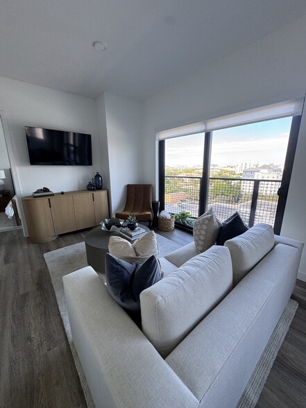 Spacious Downtown Apartments with Stunning City Views Brand-new apartments featuring open-concept kitchens and floor-to-ceiling windows. Enjoy luxury amenities including a rooftop pool, 24/7 gym, CrossFit area, co-working space, and dog park. Limited-time special: up to 2 months free! Photos are of the model unit. Prices may vary based on availability. Special reflected in pricing.