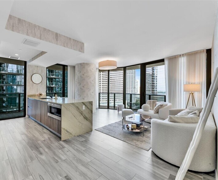 Enjoy bay and Miami skyline views from the wrap-around balcony of this newly updated 2 Bed, 2 Bath corner unit at the SLS Lux in Brickell. The unit features a private elevator with biometrics technology, fully upgraded penthouse-like kitchen, wood-like porcelain floors, finished walk-in master closet, large master bathroom with a double sink, rain shower and a separated tub. Modern drop ceilings with recessed lighting and LED accent This building offers high-end amenities including a residential only roof top pool, residential only indoor lounge with a private wine cellar, several lounge areas, a SPA with a relaxation area and three treatment rooms, fully equipped gym, play room, full service pool and cabana lounge, pool and poker tables, tennis court, 24/7 concierge service and valet.