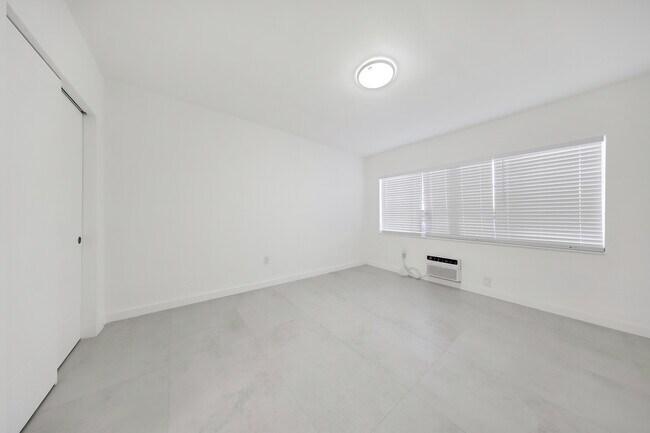 First floor spacious unfurnished 1 bedroom/1 bath, totally redone with porcelain floors, new kitchen, new bath, newer air conditioner. Great 2-story courtyard building with impact windows and doors. Great location on the corner of Rue Versailles and 71st Street. Walk to shops, restaurants and places of worship. Assigned parking available. Laundry facilities on-site. Minimum 1 year lease. Credit and background check required.