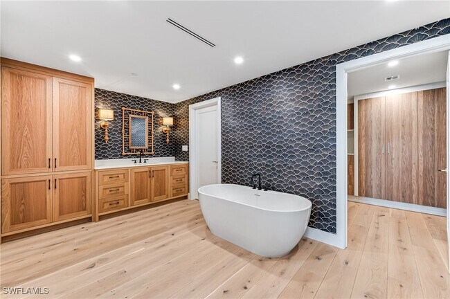 Experience luxury living at its finest in this exquisite 4-bedroom,4-bathroom residence located in the newest tower of Kalea Bay,with spectacular views overlooking the serene Gulf of America in Naples. Step off your private elevator into a stunning foyer that sets the tone for the gorgeous spacious ultra-high-end luxuriously furnished interior. The Chef's Kitchen,adorned with Wolf & Subzero appliances,natural gas range,and quartz countertops,seamlessly blends style and functionality. A well-appointed Butler’s Pantry with wet bar and second microwave serves as the perfect area for preparing and serving meals,simplifying your entertaining needs. The Tower amenities exclusive to residents boast a coveted Sky Deck offering breathtaking,unobstructed views of the Gulf of Mexico and Turkey Bay,and Mangroves—an ideal retreat for relaxation and enjoyment. Residents can indulge in leisurely activities such as lounging by and swimming in the pool,working out in the Fitness Center with panoramic vistas,or unwinding in the lounge area while taking in spectacular sunsets. Residents also enjoy access to a world-class resort-style Club featuring a state of the art Wellness Center,3 Pools including a children’s wading pool and an adult only pool,active Tennis Center and Pickleball Courts,indoor/outdoor dining options,a Tiki Bar,Café,Fire Pits,Beauty Salon and charming Guest Cottages. Plus,a convenient 5-minute shuttle transports you to the pristine Vanderbilt Beach ranked in the top 10 in the country enhancing the allure of this exceptional community.