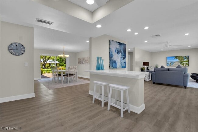 The perfect beach cottage! This classic Olde Naples home has been completely renovated to offer comfort and coastal style in an ideal location along tree-lined 1st Ave N,just three houses from the beach. Walk out your front door to catch nightly sunsets or enjoy early morning beach walks to welcome another beautiful day in paradise. Inside the house,you will find three beautifully appointed bedrooms arranged in a split floor plan. At the center of the home is the open kitchen with sparkling quartz countertops,stainless appliances and a breakfast bar overlooking the living room. A large dining room offers plenty of space for entertaining and the screened lanai has another outdoor dining table,perfect for enjoying those balmy gulf breezes over coffee or dinner!