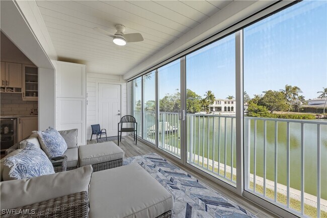 Panoramic Bay View! This exquisitely updated second-floor,two-bedroom,two-bath condominium in the Ambassador Club at The Moorings boasts floor-to-ceiling windows framing breathtaking views of Hurricane Harbor. Designed with modern elegance,it features sleek wood-look tile floors,quartzite countertops,and a sophisticated kitchen with stainless steel appliances and a stylish breakfast bar. Ideally on the south end of Gulf Shore Boulevard N,dubbed the Miracle Mile,just steps across from the beach and moments from the upcoming Four Seasons Naples and world-class shopping and dining of 5th Avenue South. Enjoy direct gulf access,a floating dock for kayak and paddle board launch,a heated community pool. Additional conveniences include an on-site manager,common laundry facilities and a deeded parking space.