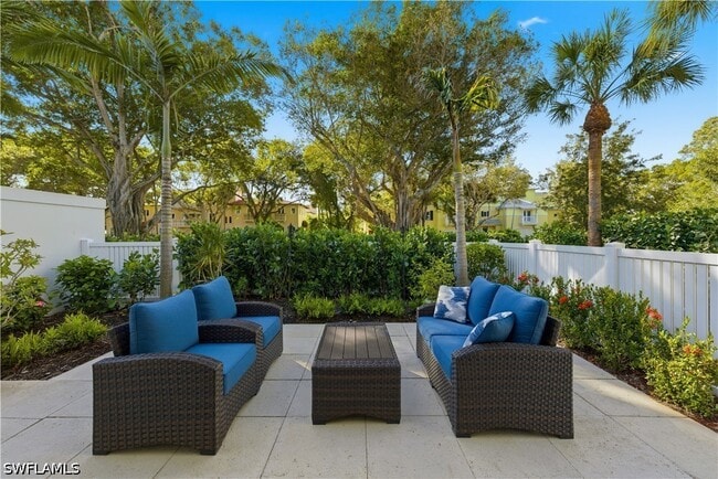 Guests will enjoy this Lovely,cheerful and colorful property only 2 blocks to 5th Ave. S. in Old Naples. Walk to the beach (3 blocks) and walk to all the restaurants,shops and galleries for which Old Naples is famous! All this is possible and still enjoy reasonable rent. The living room offers a sofa and loveseat,TV,and sliding glass doors leading to a large patio with cushioned furniture for your outdoor seating with additional table for dining. There is an expandable wood table in the living area which opens to accommodate 6. In addition,there is a kitchen table and 4 chairs. The flooring is tile throughout the condo in keeping with the beach atmosphere. The kitchen is sizable and very well equipped and completely updated. The master bedroom offers a king bed,large closet,chair and TV plus its own bathroom with shower. The guest bedroom has twin beds,a closet and TV and the hallway bathroom with shower is next to the guest bedroom. There is a washer and d