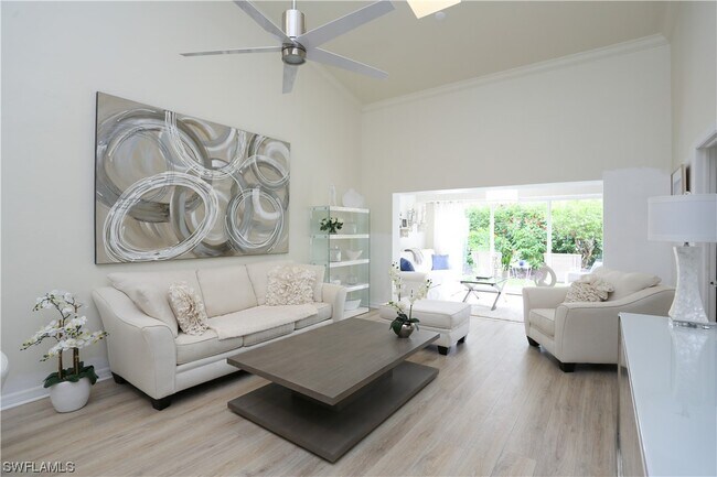 Stunning, meticulously maintained villa that sits in one of the most coveted neighborhoods in the World Tennis Club. Step inside this newly updated, energy-efficient, ultra-spacious home which is comprised of three bedrooms, two en-suite baths, and an additional half bath. You will be captivated by the two-story great room with vaulted ceilings and natural light filling the spacious living area. Walk outside to your private lanai with a beautiful preserve view. Notable details, open floor plan, spacious kitchen with quartz countertops, new appliances, new flooring and fresh paint. Located steps away from the community pool and close to resort amenities at the club which include a heated pool, spa, sauna, poolside restaurant, exercise room, bocce courts, 16 tennis courts, pro shop and tennis pro-on-site. Available April - November: $3,995