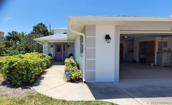 Currently furnished but owner will entertain a long term lease either furnished or unfurnished. This lovely home is 3 homes from the beach. Very spacious and comfortable with a large kitchen and living area and 1 bedroom downstairs with a bath. A large covered lanai with picnic table in the backyard with a great outdoor shower and fenced yard. Possible dog allowed. Nice 2 car garage with a half bath inside. Plenty of parking. Come see why north beach is spectacular. Bike or walk to Flagler for restaurants and shopping.