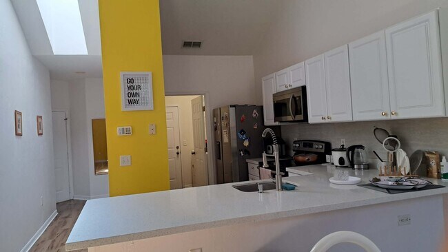 Beautiful 2/2.5 townhouse-styled condo with attached garage for rent. Updated paint and new floors throughout the home. The unit is located in the back of the community with a beautiful back view and good privacy. First floor has garage, kitchen, dining and living spaces, as well as a screened porch and a half bathroom. Second floor has two bedrooms, each with their own bathrooms and walk-in closets, as well as a laundry room. Perfect for a small family. Currently zoned for Meadowbrook Elementary School, Fort Clarke Middle School and Buchholz High School. Gainesville city bus service (Route 52, 5-min walk to the bus stop) directly to UF and Shands Hospital. Scroll the pictures to see the floor plan. Community amenities include a swimming pool with hot tub, basketball and tennis courts, a playground, a fitness center with sauna, car wash area with vacuum, and a well-equipped clubhouse with daily access. The Greens at West End is a gated community across from Tioga Town Center that offers all kinds of restaurants, clinics and entertainment. Renters pay their own utilities through Clay Electric (electricity) and GRU (water only). No smoking allowed. Small pets allowed but require a prepaid nonrefundable $250 cleaning fee, and an extra $25 on the rent per pet per month. Renters pay their own utilities through Clay Electric (electricity) and GRU (water only). No smoking allowed. Small pets allowed but require a prepaid nonrefundable $250 cleaning fee, and an extra $25 on the rent per pet per month. Upon requesting a tour, please let us know your preferred move-in date. Since the unit is move-in ready, we prefer this property to be rented out sooner than later. Thanks!